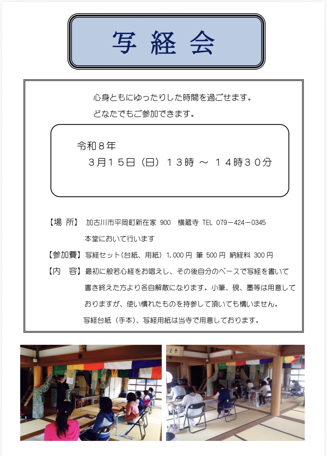 - 2026年3月15日 ◆ 写経会【13時~14時30分】
