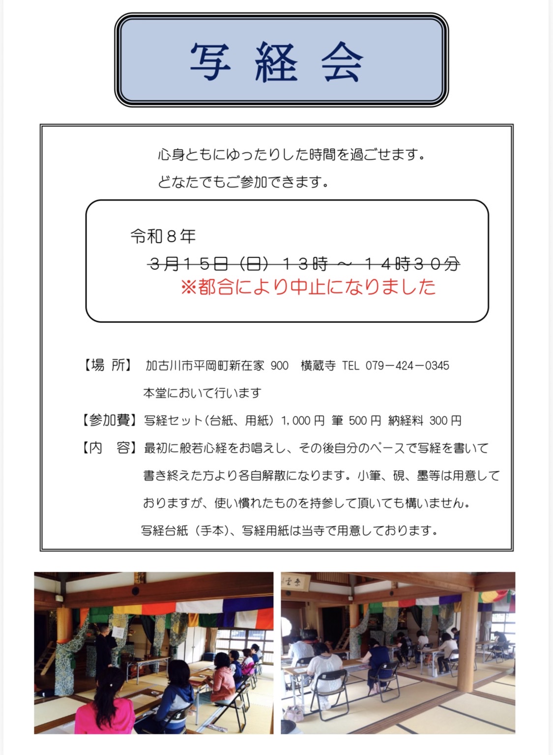 - 2026年3月15日 ◆ 写経会【都合により中止となりました】