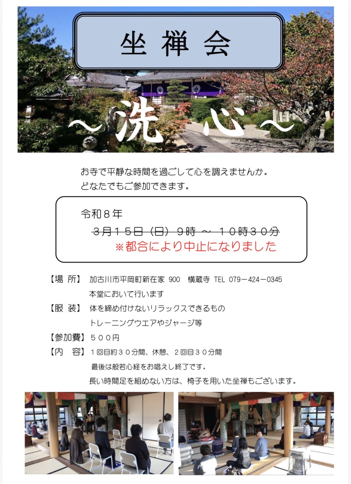 - 2026年3月15日(日) ◆ 座禅会【都合により中止となりました】